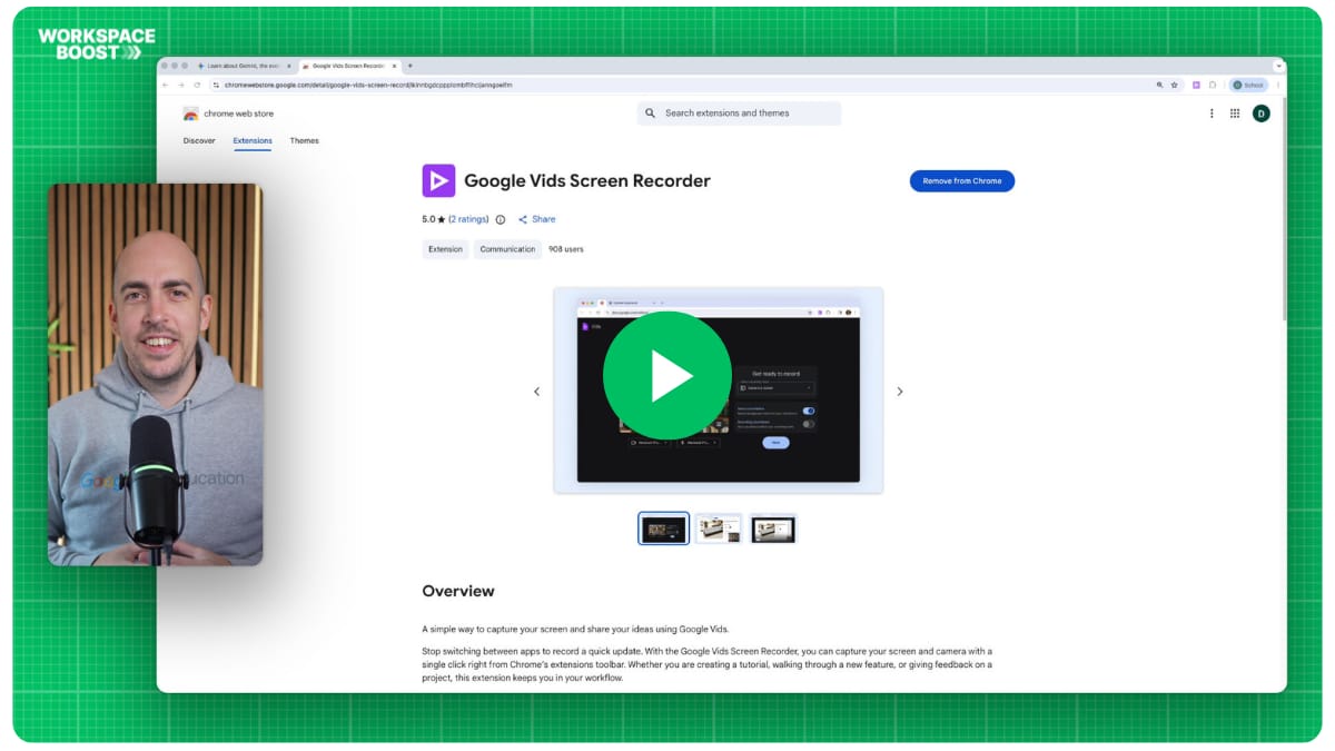 Install the Google Vids Screen Recorder Chrome extension from here