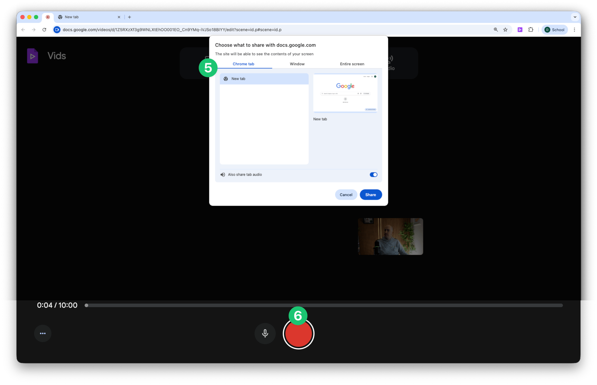 [Optional] If you’re recording your screen, select the window/tab