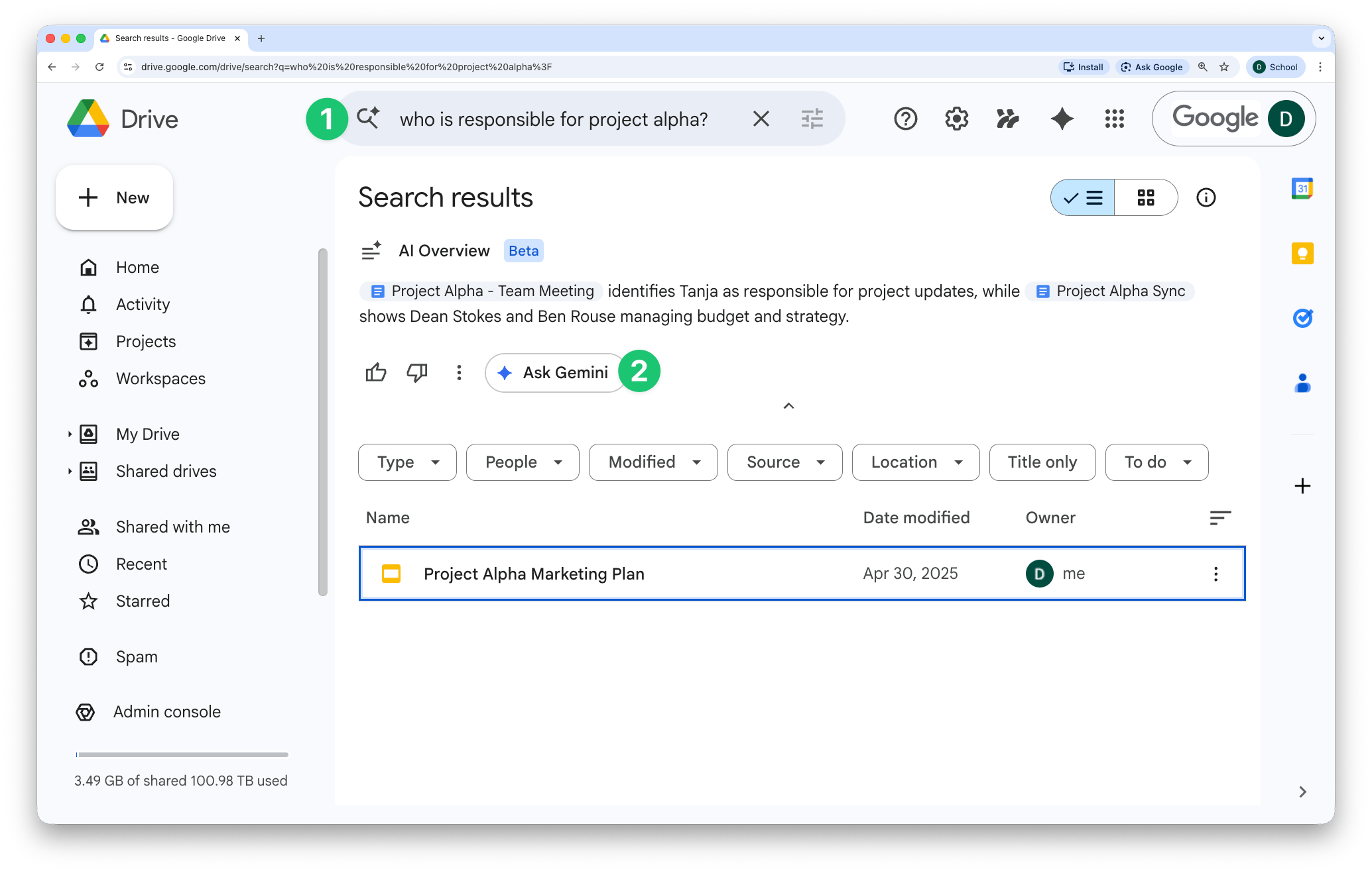 Now, Gemini can search across your files and give you the answer directly, without you needing to open a single document.